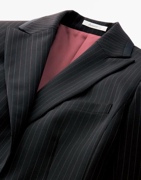 「A173シリーズ」:2017-18年 秋冬物!!定番色の信頼感に、カラーのピンストライプがシャープさも付け加えていて、品格ある女性を演出するスーツです。