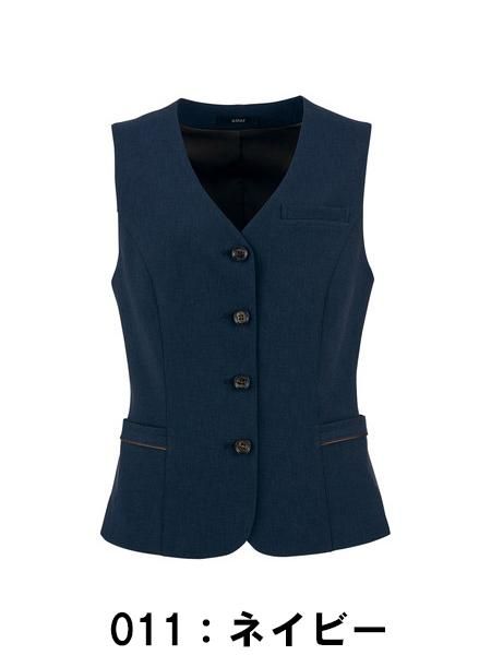 すっきりした印象の4つボタンベスト。ポケット部と後ろウエストのパイピングが、スタイルにメリハリを見せます。